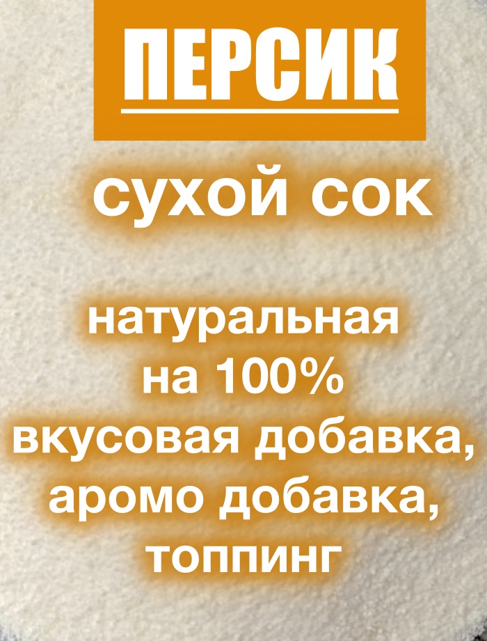 Краситель натуральный пищевой сухой сок персика, 100% натуральный сублимированный сок плодов персика, полученный методом распылительной сушки, консистенция пудра, растворяется мгновенно. Придаст продукту лёгкий цвет и аромат персика.